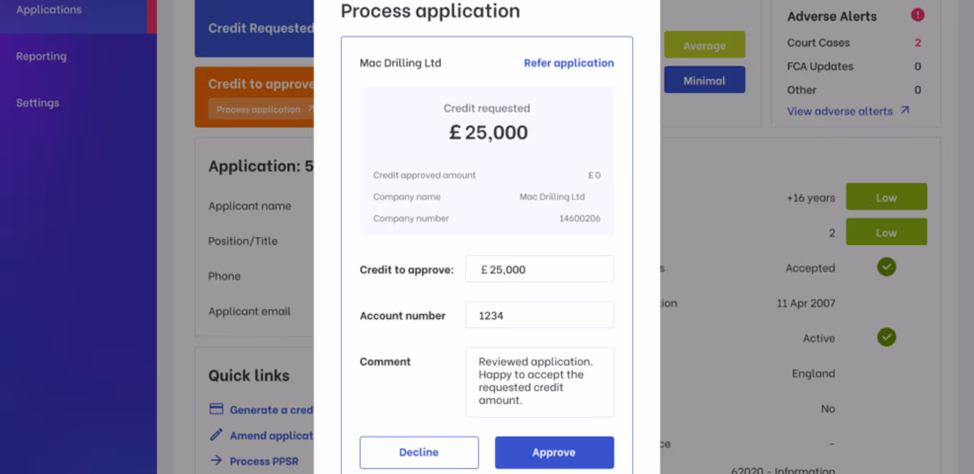 Our trade credit assessment and decision workflow is customisable to your unique risk profile and choice of multi-bureau credit data.