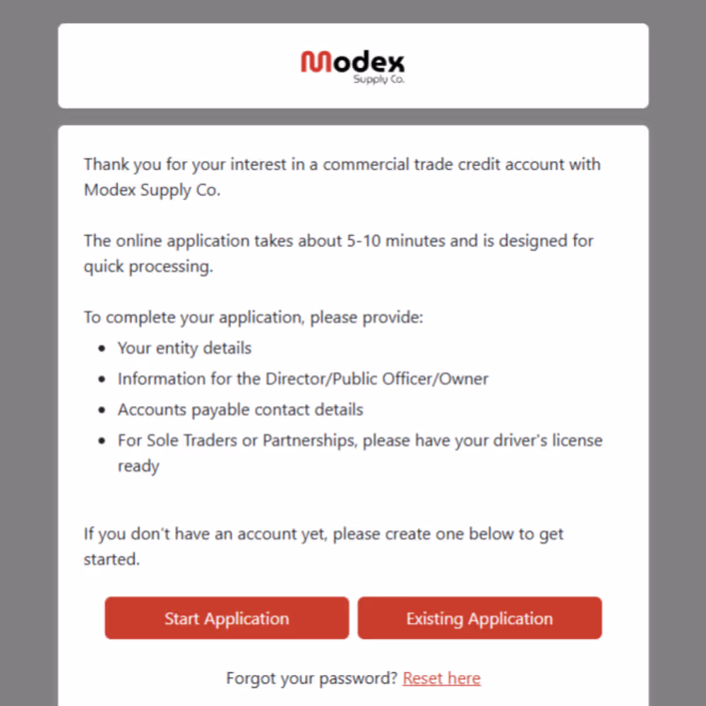 Our online trade credit account application is customisable to your unique information requirements, branding requirements and delivery method.