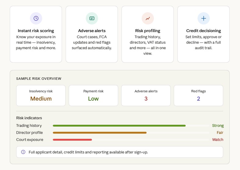 The Credit Intell software has been designed specifically for B2B businesses providing trade credit, to speed up the onboarding and collecting process.